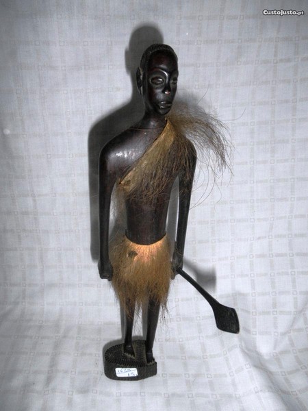 Estatueta de figura de homem de tribo africana em madeira.