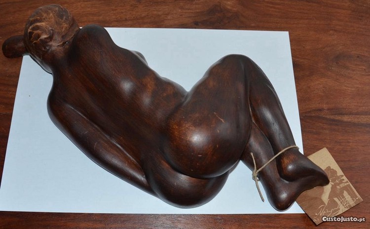 Bonita e elegante peça de artista plástico português executada em barro imitando madeira, tratando-se de uma reprodução limitada e retratando uma mulher nua grávida.