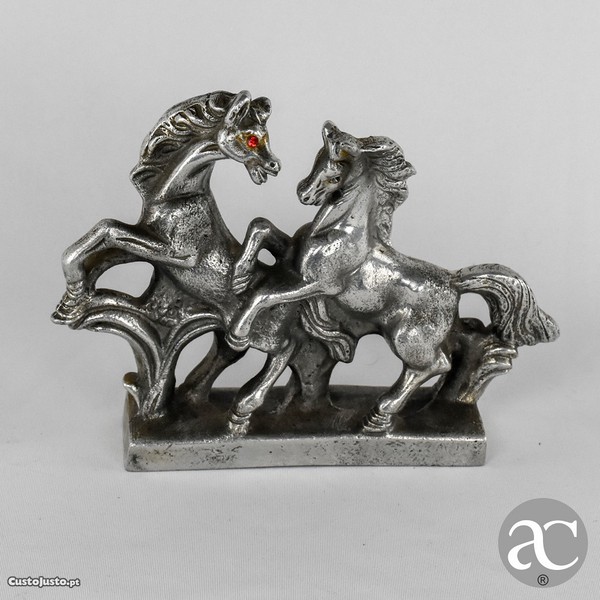 Preço: 20 €Grupo escultórico de Cavalos em metal prateado