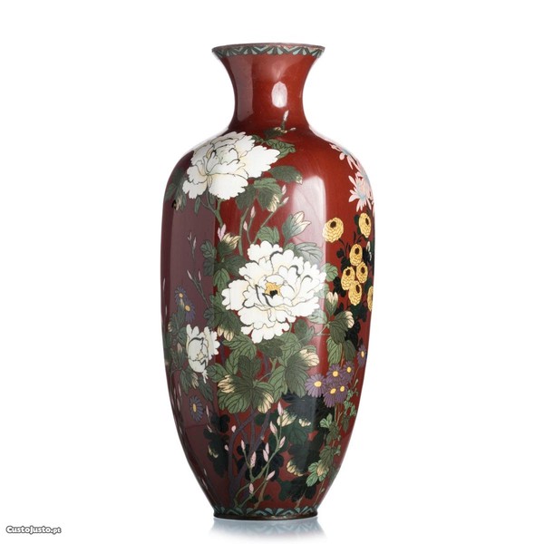 Jarra facetada japonesa, em metal e esmaltado do período Meiji (1868/1912).