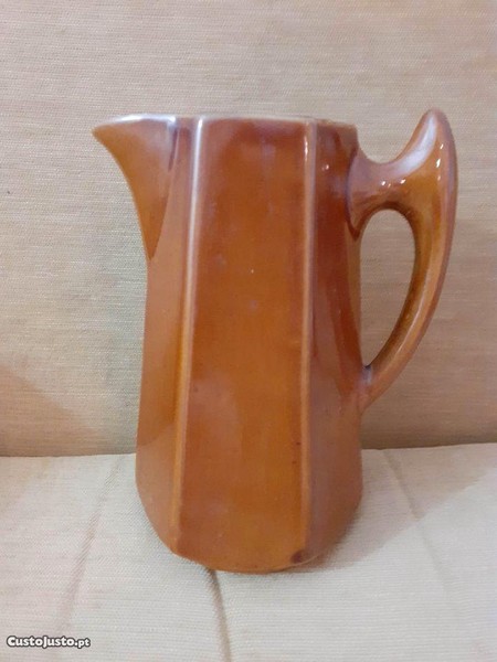 -Descrição: jarro antigo em cerâmica vidrada com formato geométrico. Peça não marcada.