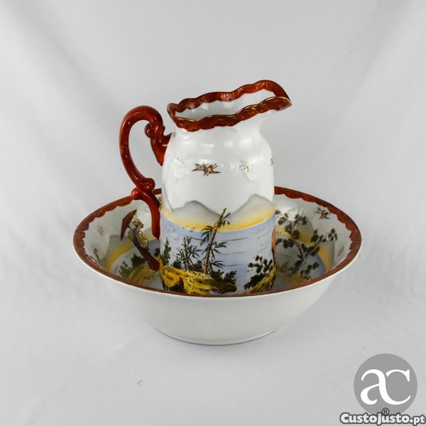 Jarro e Bacia decoração oriental, porcelana Vista Alegre