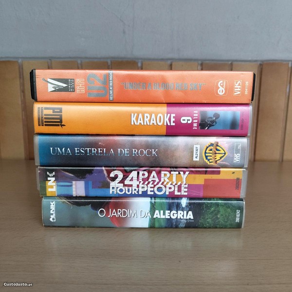 VHS em bom estado, originais. U2 Under a Blood Red Sky: 15EUR Karaoke Elvis Presley: 5EUR Filme uma estrela de Rock: 3EUR Filme 24 Hour Parti People: 3EUR Filme O Jardim da Alegria: 3EUR Entregas em mão no centro de Guimarães, envios via CTT após pagamento por Transferência, Entidade e Referencia(mínimo de 10EUR) ou Mbway. Portes a verificar
