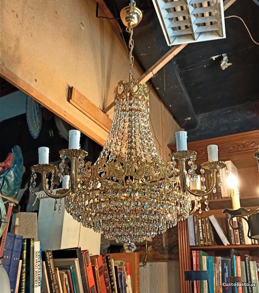 Preço: 1 000 €Lustre Dourado Banho Ouro Cristal 14 Lâmpadas