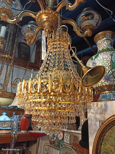 Preço: 450 €Lustre Dourado Banho Ouro Cristal 6 Lâmpadas
