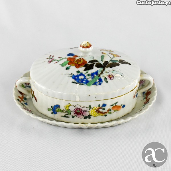 Preço: 450 €Manteigueira com tampa e travessa, porcelana da China séc. XVIII, Período Yongzheng (1723 a 1735)