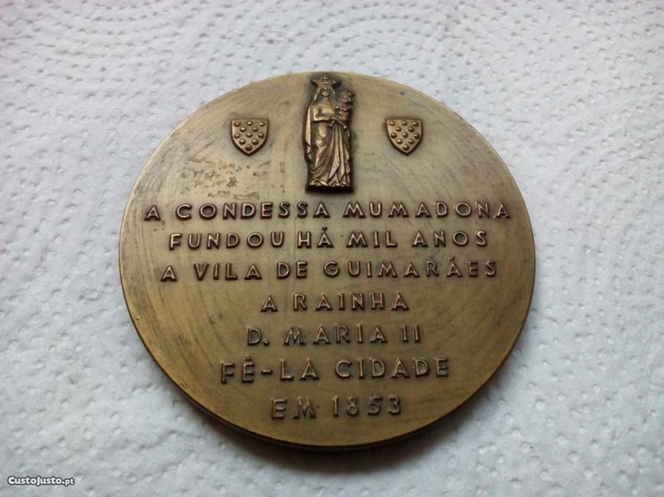 Medalha alusiva à Condessa Mumadona com o verso da medalha figurando o Castelo de Guimarães.