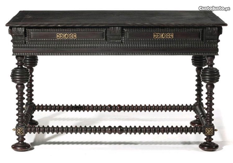 Mesa de bufete portuguesa do séc. XX, em pau-santo com duas gavetas simulando quatro.