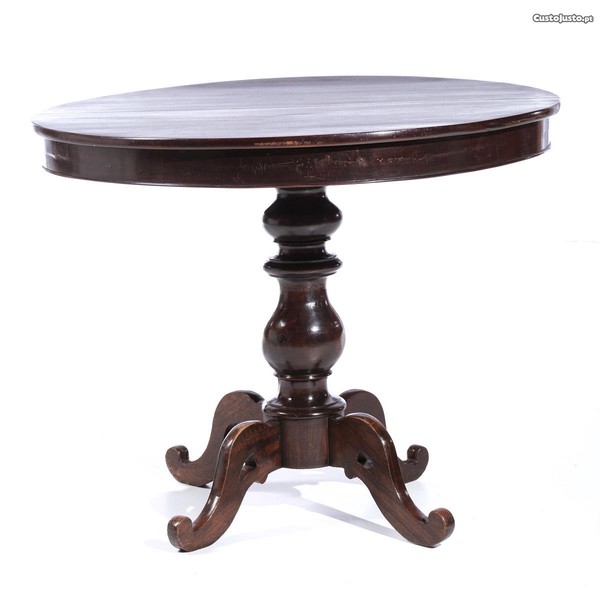 Mesa de centro romântica portuguesa, do século XIX, em madeira de mogno. Tampo de rebater.