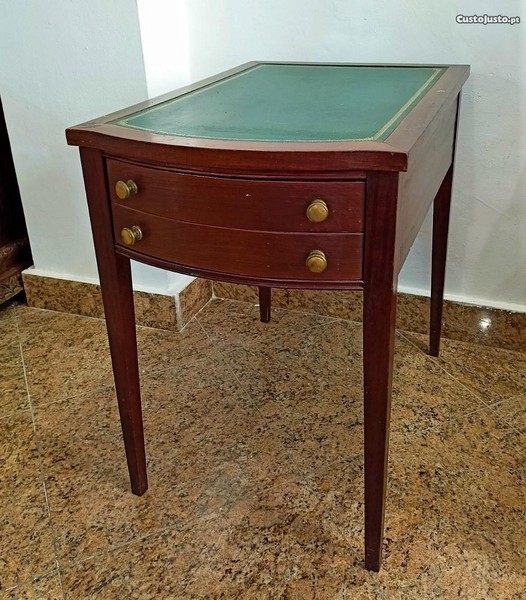 Mesinha de apoio em madeira com uma gaveta e napa no tampo.
