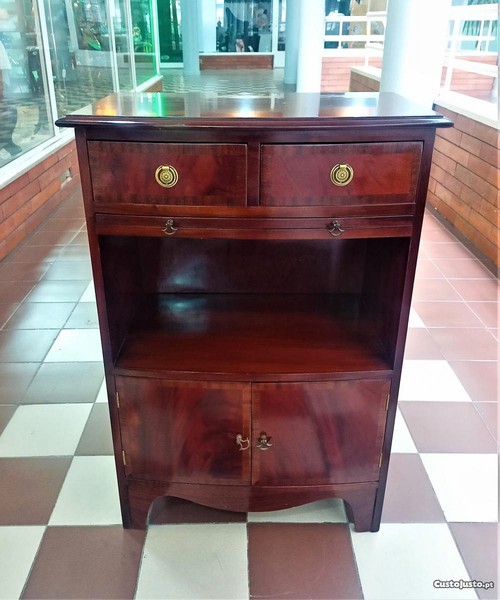 Mesinha de cabeceira em madeira de 2 gavetas, tampo extensível e 2 portas.