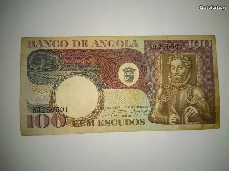 Nota de Angola Ultramar: 100 Escudos de 10.06.1973. Muito bem conservada.