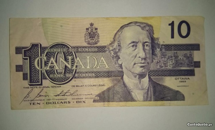 Nota do Canadá, de 1989: 10 Dólares.