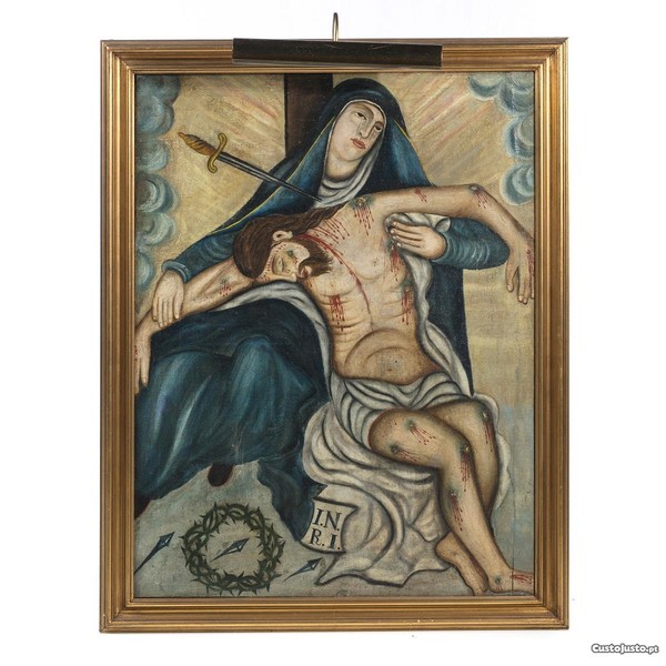 "Pietá". Oficina portuguesa, óleo sobre tela do século XIX.