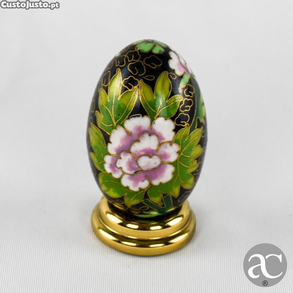 Ovo em cloisonné, China, com base em metal dourado N7