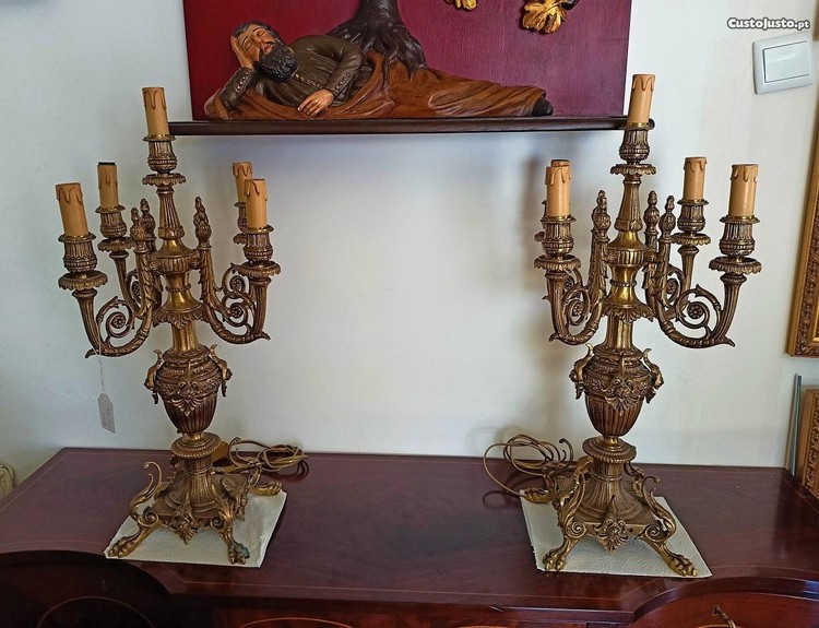 Preço: 1 750 €Par Candeeiros Mesa Bronze 5 Lâmpadas