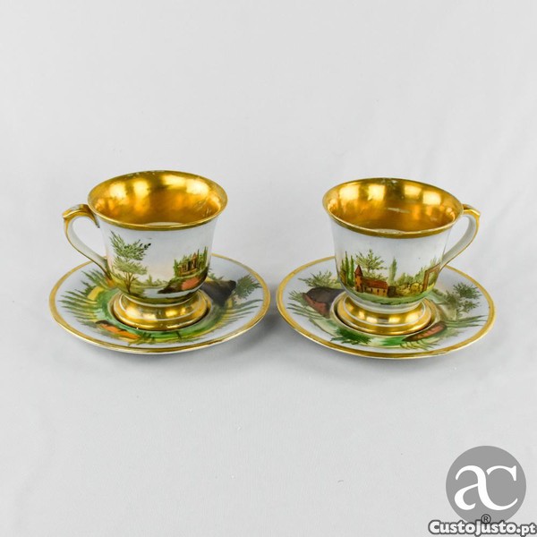 Par de chávenas almoçadeiras porcelana Europeia, séc. XIX