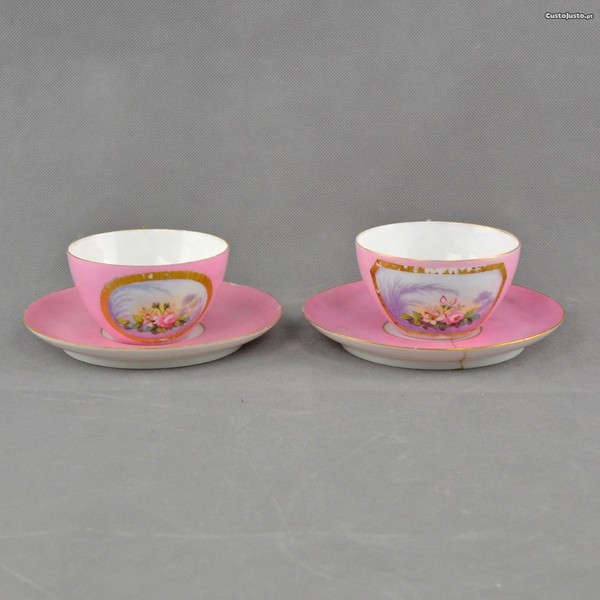 Par de chávenas porcelana Francesa séc. XIX Pintadas à mão