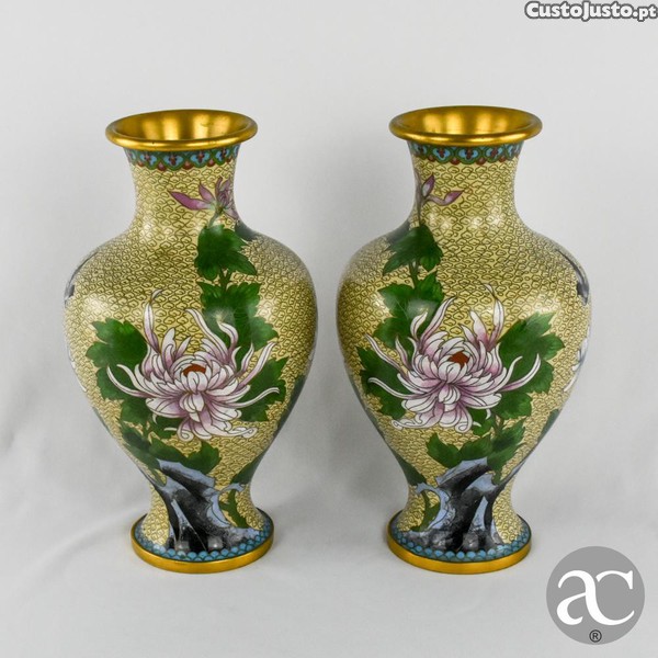 Preço: 225 €Par de Jarras em Cloisonné, decoradas com flores, circa 1960