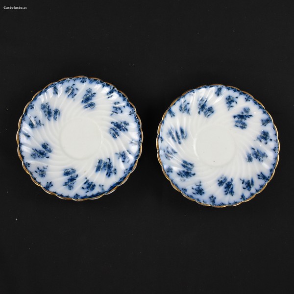 Preço: 18 €Par de Pequenos pratos Ingleses, decoração STAR, Azul com Dourados