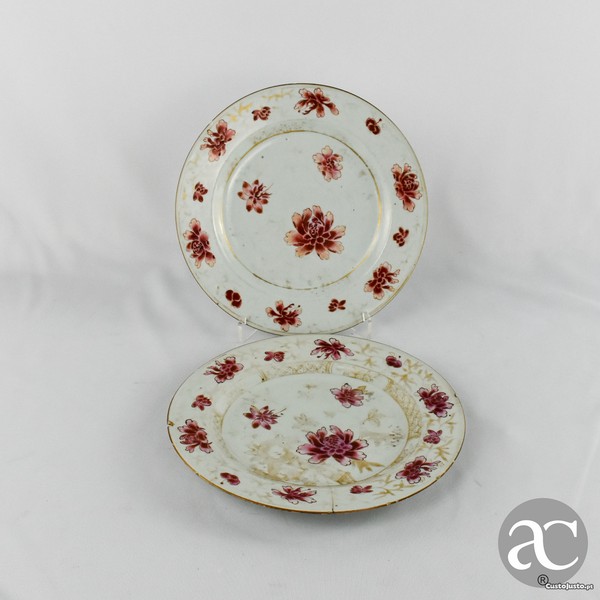 Preço: 205 €Par de pratos Companhia das Índias, Família Rosa, Dinastia Qing, Reinado Yongzheng, séc. XVIII
