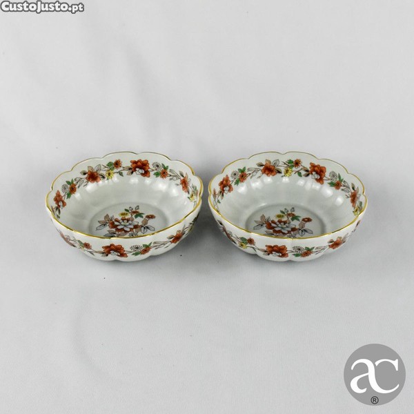 Preço: 100 €Par de Taças / Covilhetes de bordo gomado em porcelana Vista Alegre, decoração Magnólia