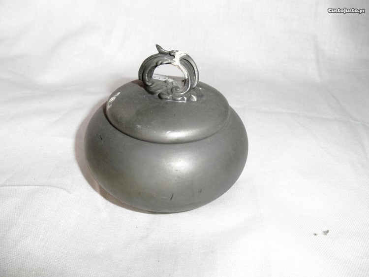 Pequena caixa em estanho com tampa.