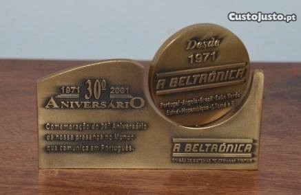 Placa em bronze alusiva à comemoração do 30 aniversário da empresa Beltrónica, ocorrido em 2001.