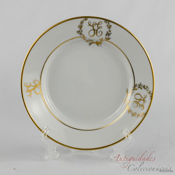Preço: 15 €Prato de doce em porcelana Artibus, com monograma QE