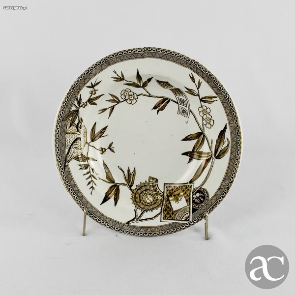 Prato fundo Faiança Inglesa, decoração Louise, Wed C Wood & Cº, ano 1881