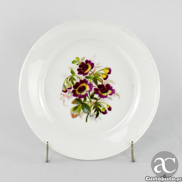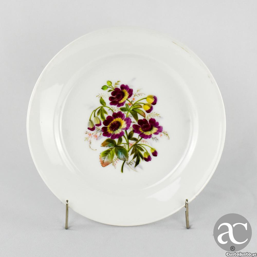 Preço: 35 €Prato raso em porcelana europeia, séc. XIX, pintado decorado com flores N4