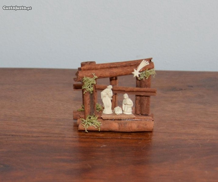 Preço: 12 €Presépio com cabana feita com paus de canela
