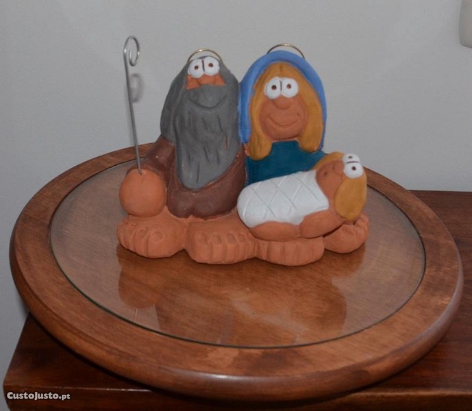 Presépio Monobloco, com três personagens Peça artesanal em cerâmica