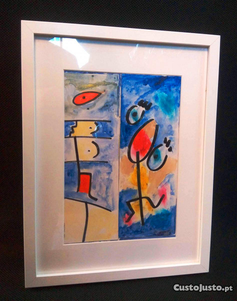 Belo quadro modernista e abstracto, aguarela sobre papel, artista "Lobo".