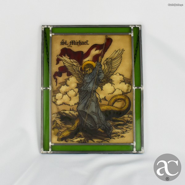 Quadro em vidro, pintado à mão, alusivo a St. Michael