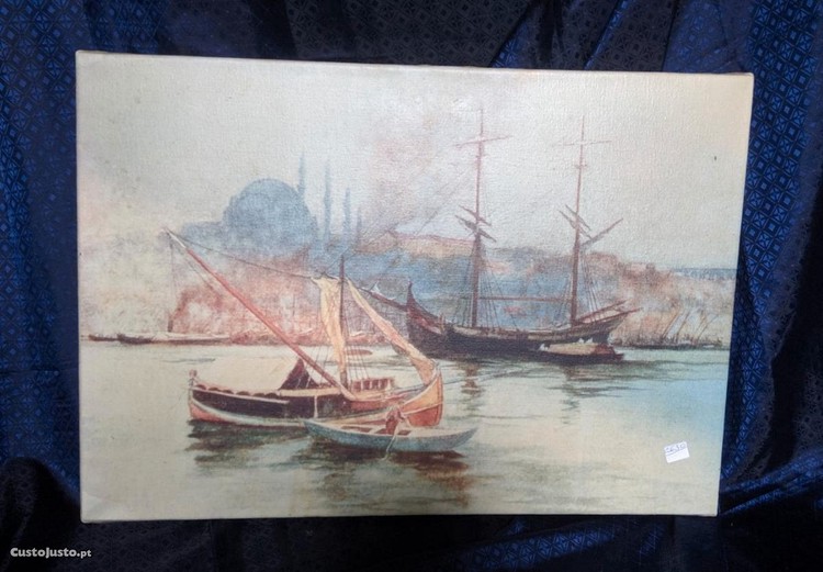 Quadro de impressão sobre tela com tema náutico e paisagístico.