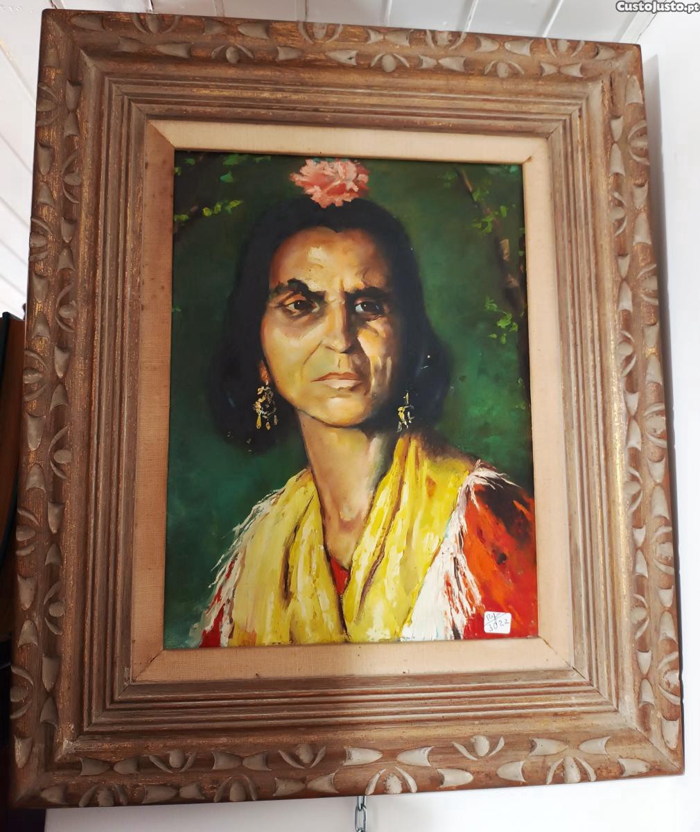 Quadro de retrato de mulher a óleo sobre tela, autor desconhecido.