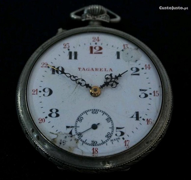 Relógio de bolso marca "Tagarela", com sinais de uso mas a funcionar perfeitamente.