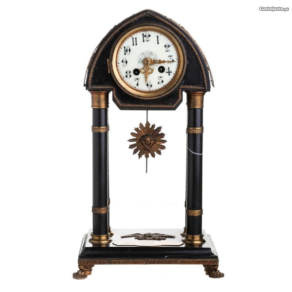 Relógio de mesa Império, francês do século XIX em mármore com aplicações em bronze dourado