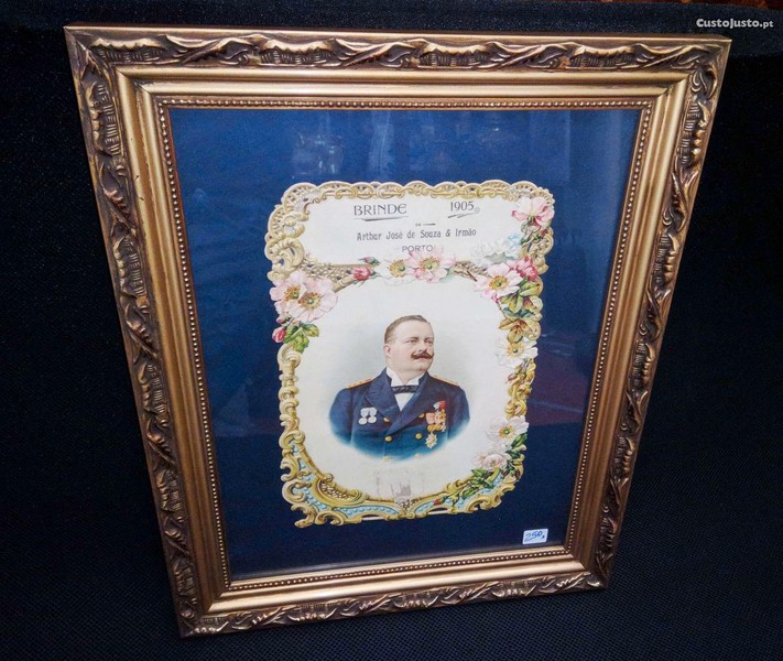 Retrato moldurado do Rei D. Carlos, brinde de 1905 de Artur José de Souza & Irmão, Porto.