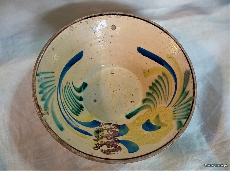 Belíssima Saladeira "Ratinho" Séc XVIII/XIX, em faiança vidrada, policromada.