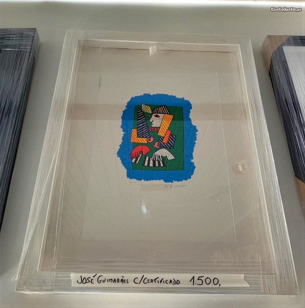 Serigrafia do artista José de Guimarães, numerada, assinada, emoldurada e acompanhada com certificado pelo Sr. Professor Armando Alves Pinto, perito em obras de Armanda Passos, Júlio Pomar, Júlio Resende e José de Guimarães.