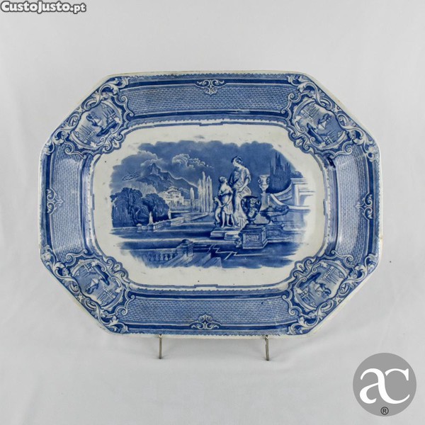 Travessa em Faiança de Sacavém, decoração Minerva séc. XIX