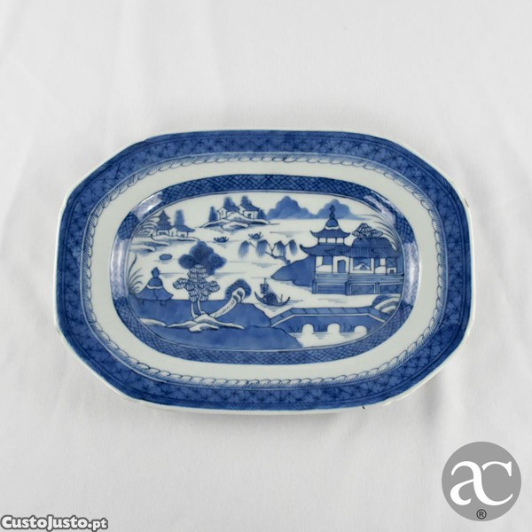 Travessa porcelana da China, pagodes e Paisagem, período Qianlong, séc. XVIII