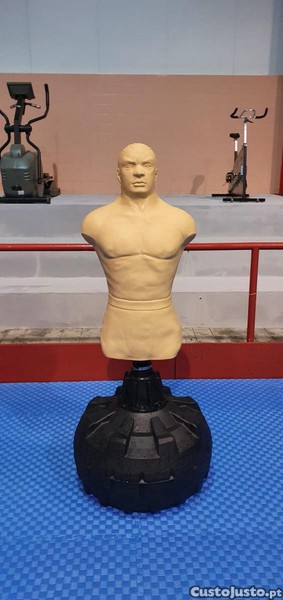 Boneco de treino em silicone, equipamento utilizado em artes marciais e desportos de combate para simular um oponente humano, que permite treinar socos, chutes, cotoveladas e joelhadas com precisão e força.