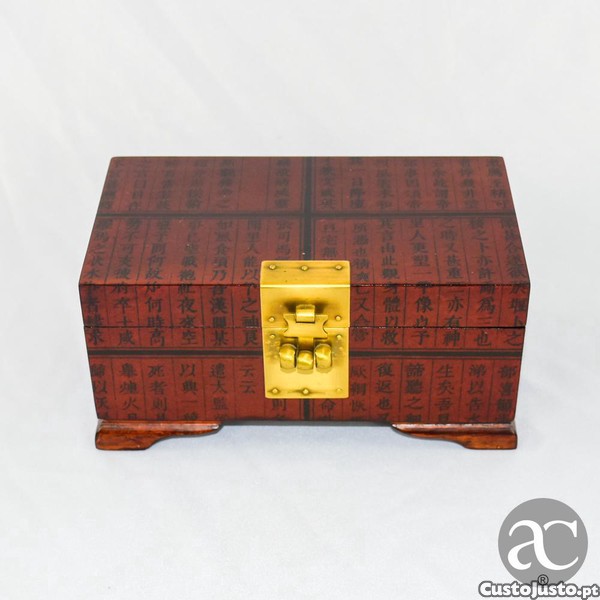 Preço: 125 €Caixa / Guarda-joias decorado com carateres chineses em madeira e metal dourado
