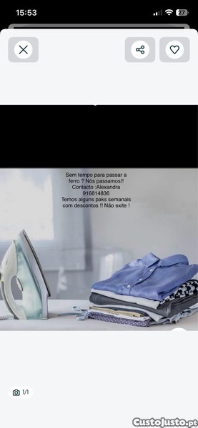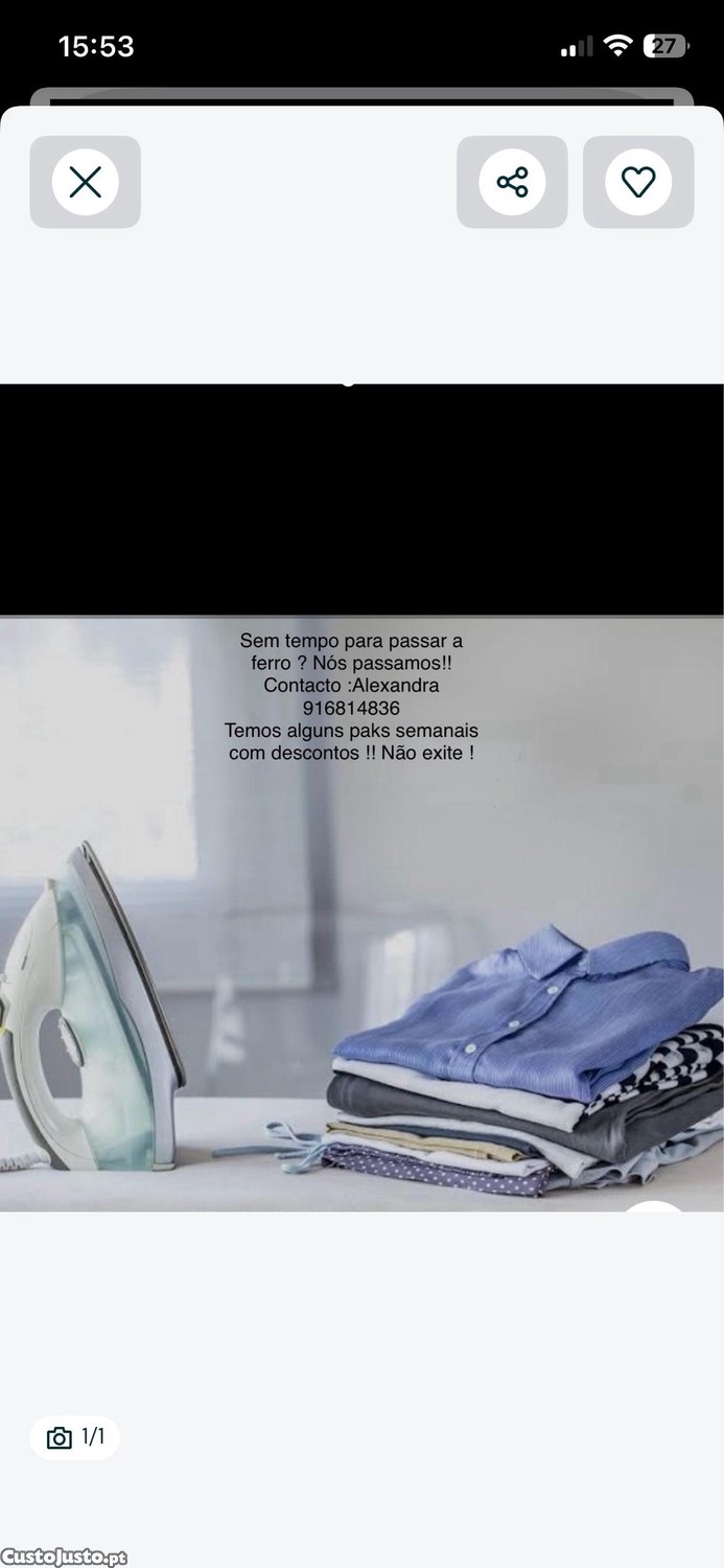 Passo a ferro na minha residencia ! Nao se preocuoe com a sua roupa !em 24 horas entregamos lhe !