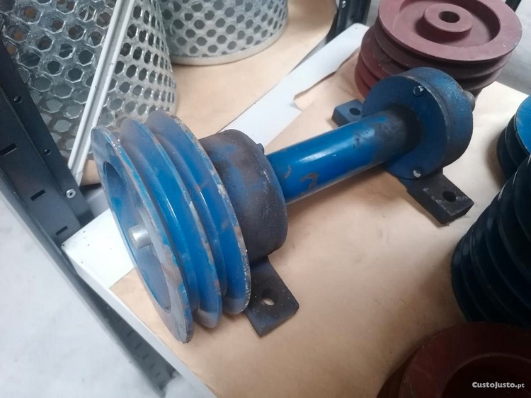 Preço: 250 €Poli Dupla com Veio de Transmissão e 2 apoios de chumaceiras - Novo