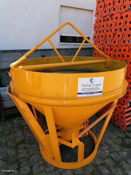 Balde de caleira 400lts com certificado conformidade (novo). Temos balde de betão de varios modelos e tamanhos, por favor queira consultar. Preço já com IVA incluído e passo fatura. Temos uma grande variedade de produtos para a construção civil.