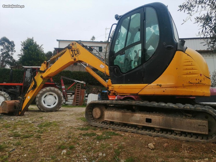 Retroescavadora giratória Jcb, em bom estado e a trabalhar bem, com engate rápido, modelo 80/80 de 8300 kg, ano 2006 e tem 9300 horas de trabalho